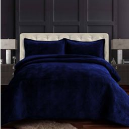 Plushious navy blue cotton velvet quilted bedspread throw.